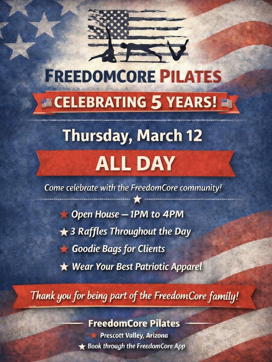 We are so excited to celebrate 5 amazing years of FreedomCore Pilates — and we couldn’t have done it without YOU ❤️